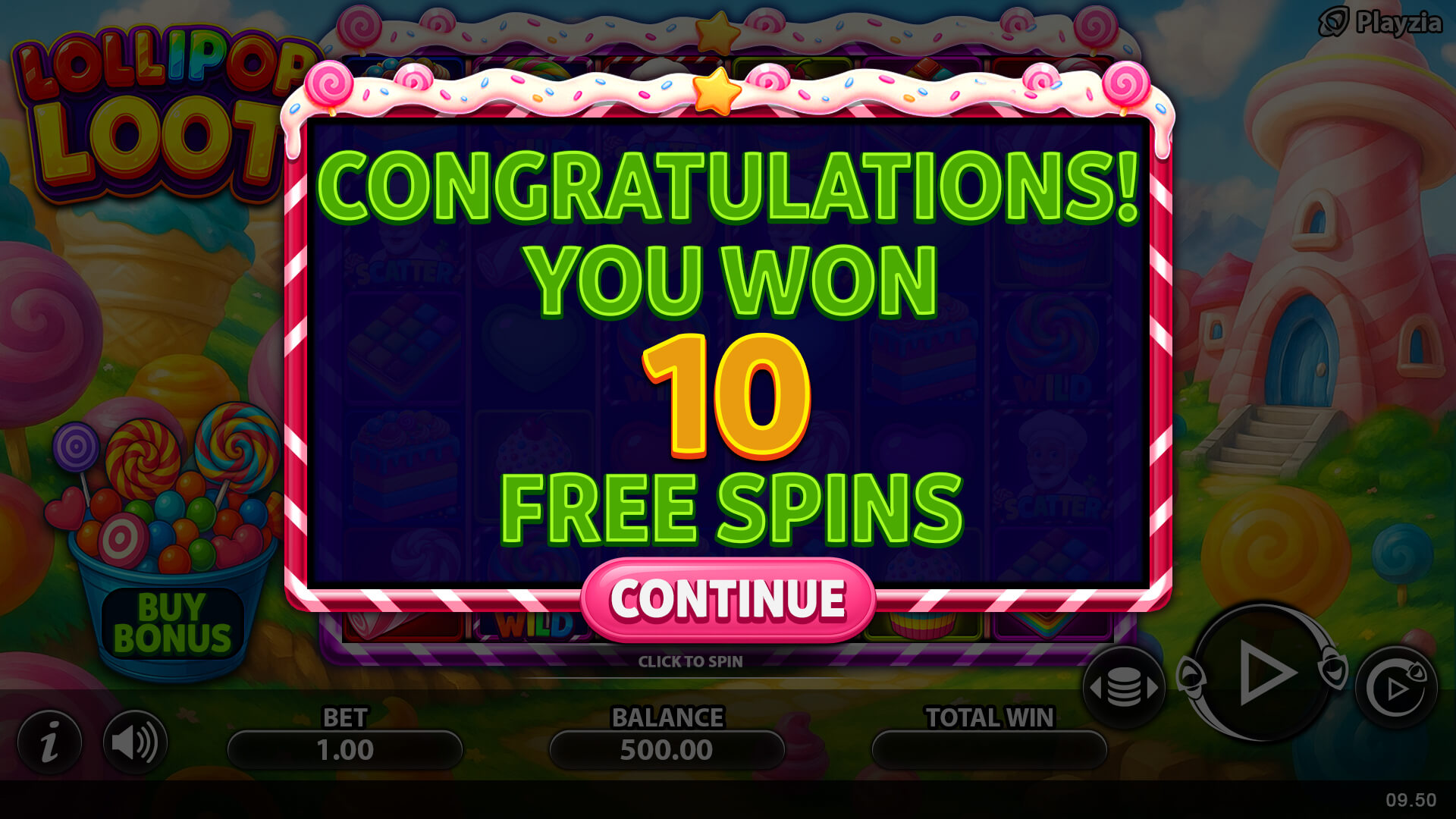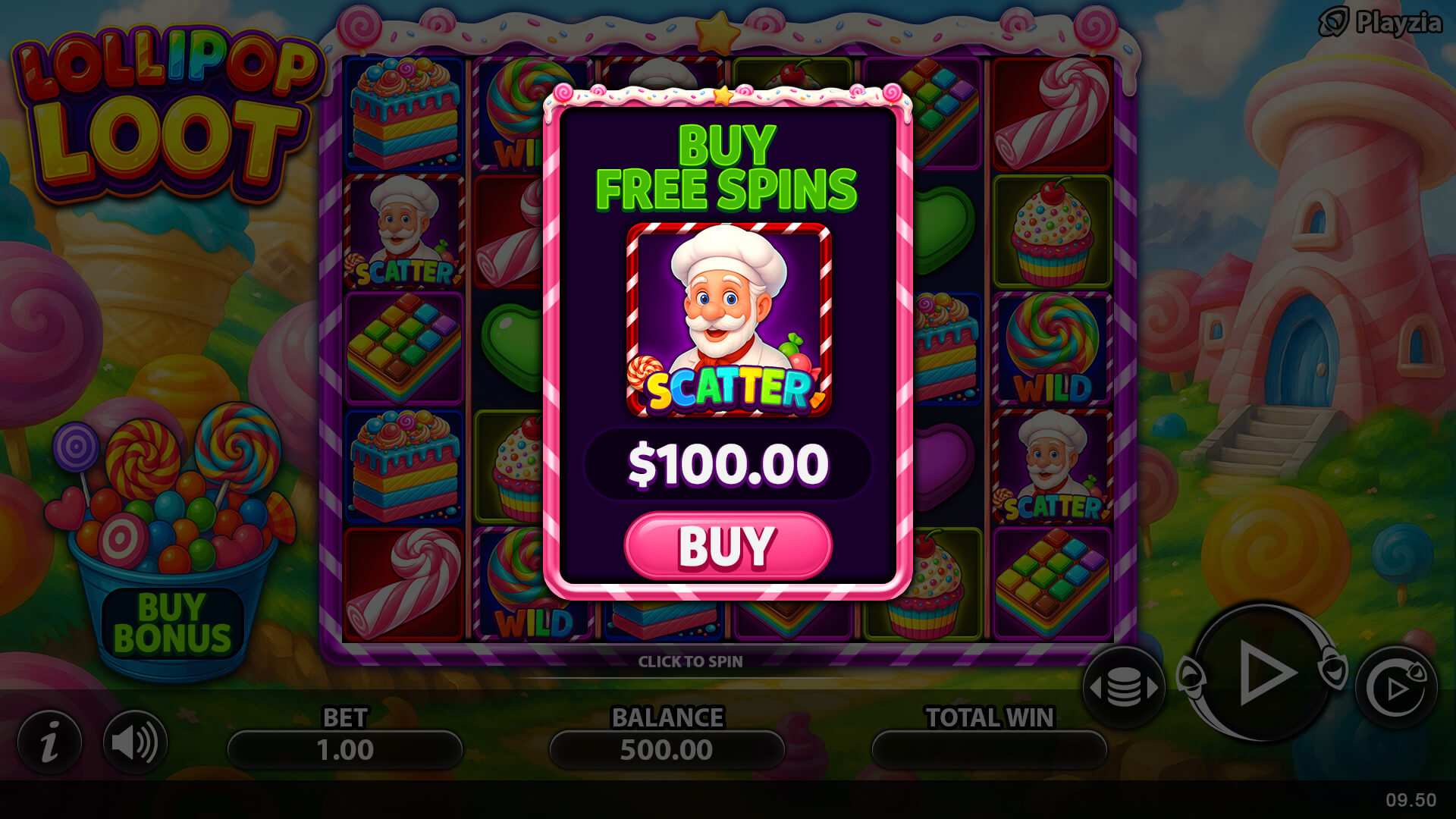 When you cannot wait to hit a bonus round, Lollipop Loot bonus buy is a feature that gives you immediate access to the free spins bonus round. Activate this feature to enjoy a guaranteed 10 free spins. It’s the same as if you were getting free spins from the base game, only you pay for access.