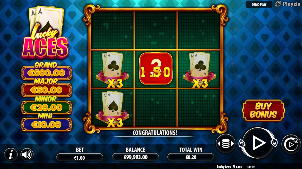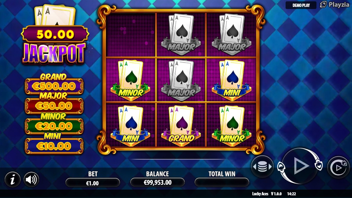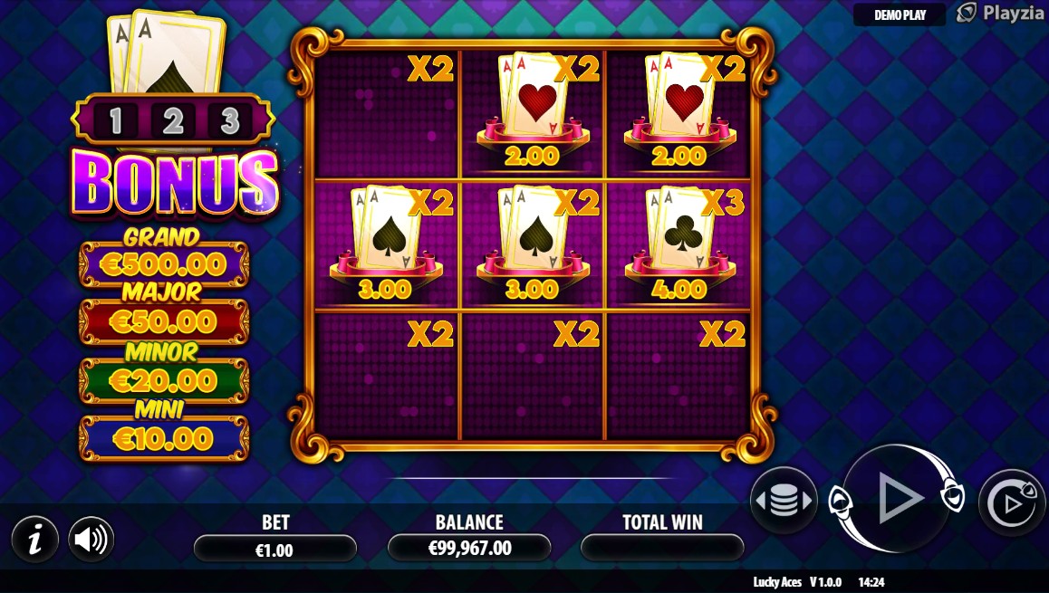 Before you play the game for real money, though, feel free to check out the Lucky Aces Playzia demo, which can be found in the Playzia slot games library. It’s free to play and will give you a better idea of what’s to come.