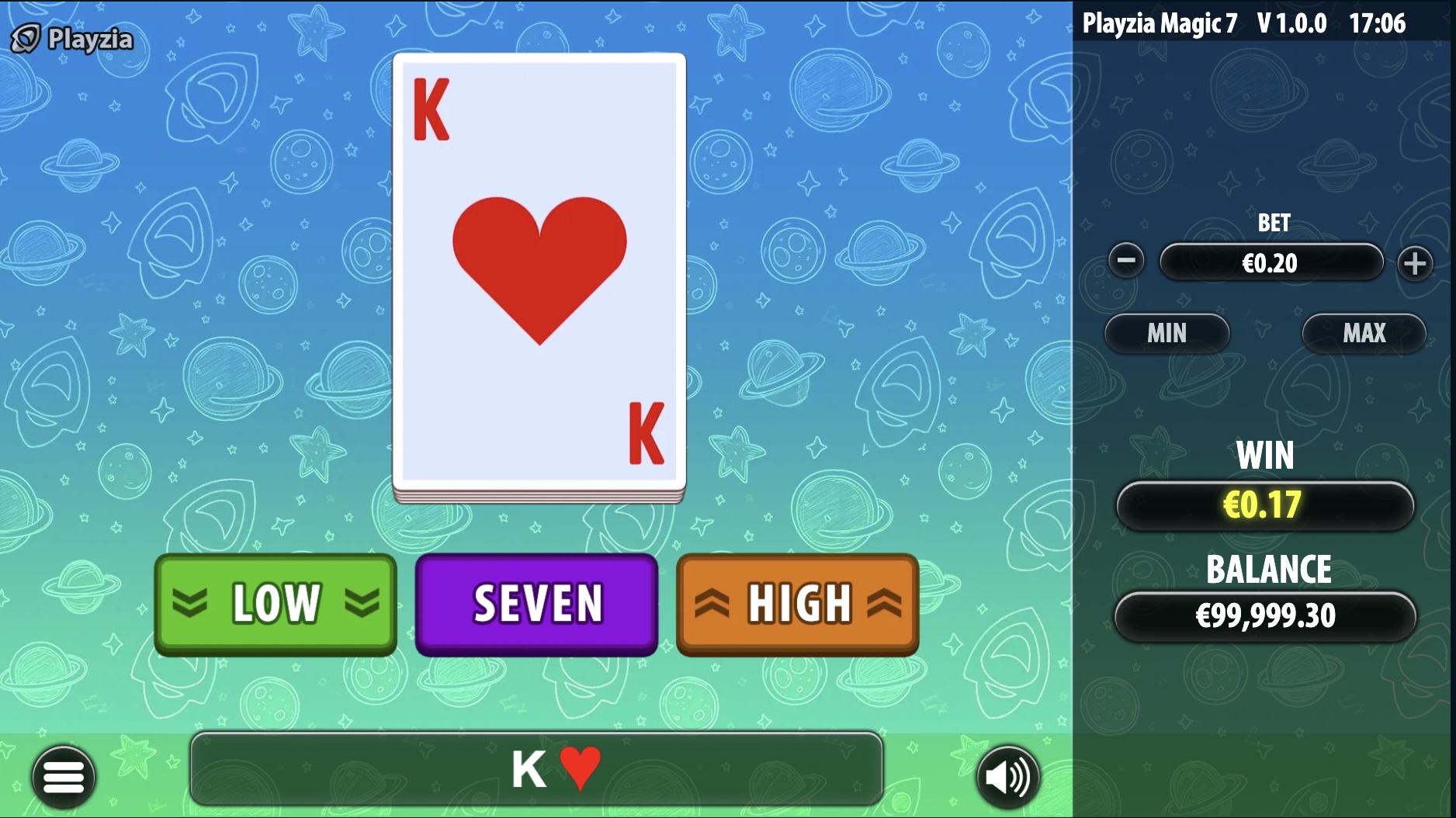 The second move you need to make is a prediction. Specifically, you need to predict whether the next card draw will be higher or lower than a 7. If you’re feeling lucky, Playzia Magic 7 has a third betting option.