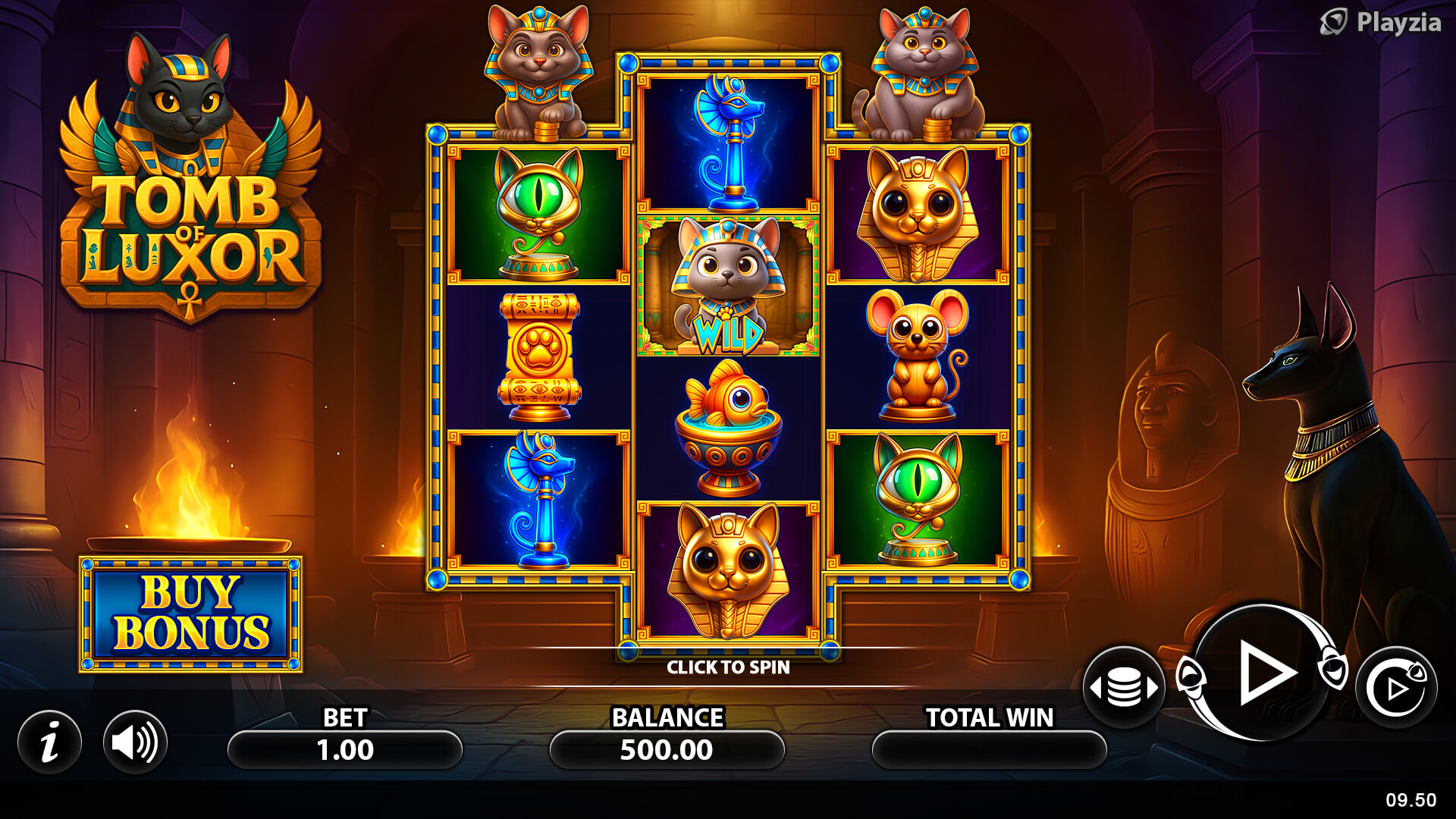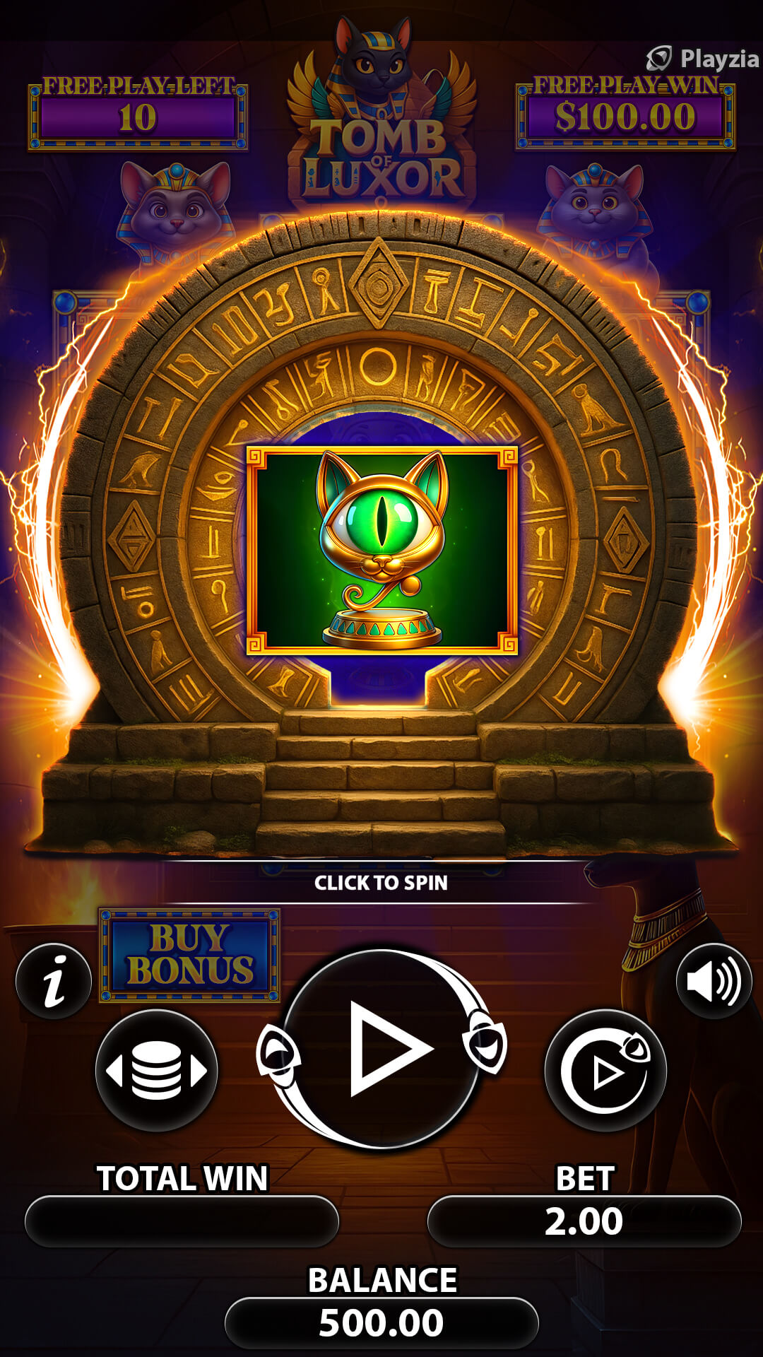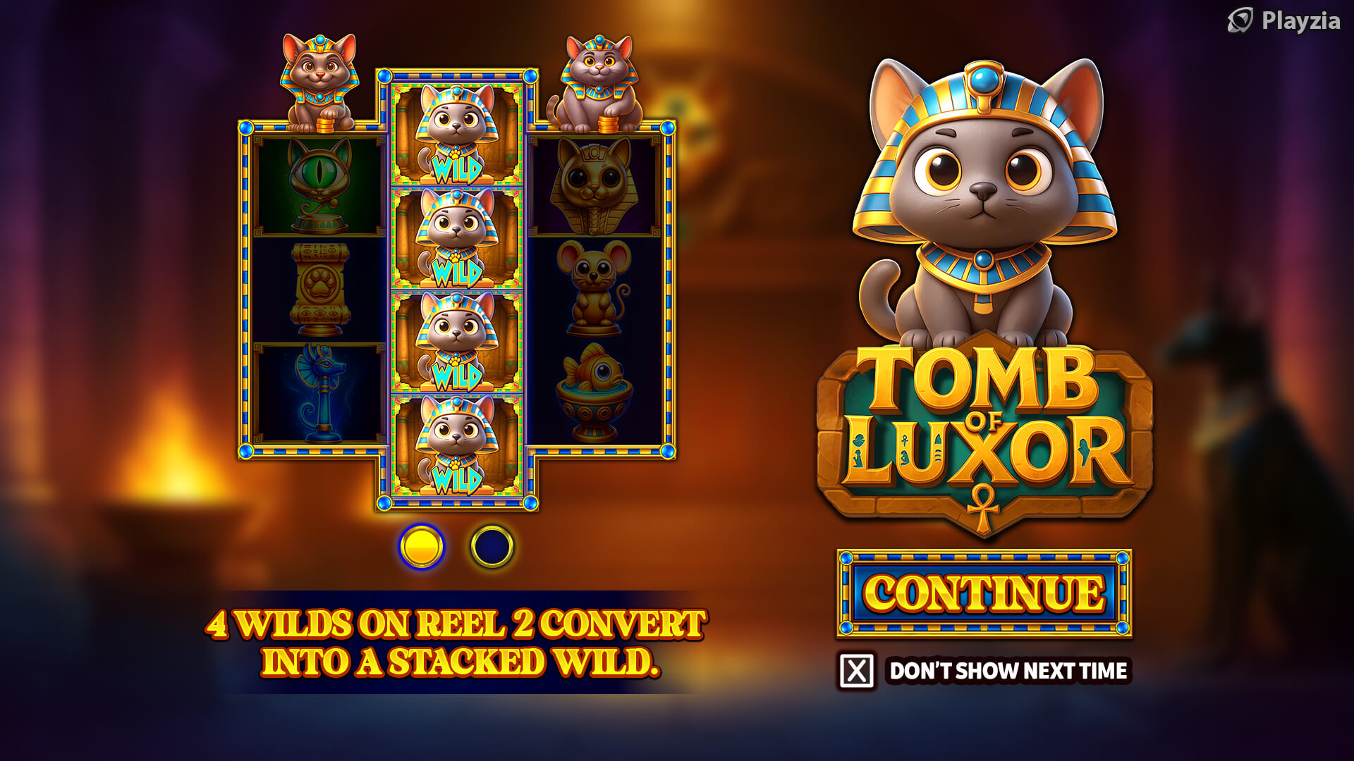 Set within a torch-lit tomb, at a time when cats were revered as gods, Tomb of Luxor from Playzia is an Ancient Egyptian adventure like no other.